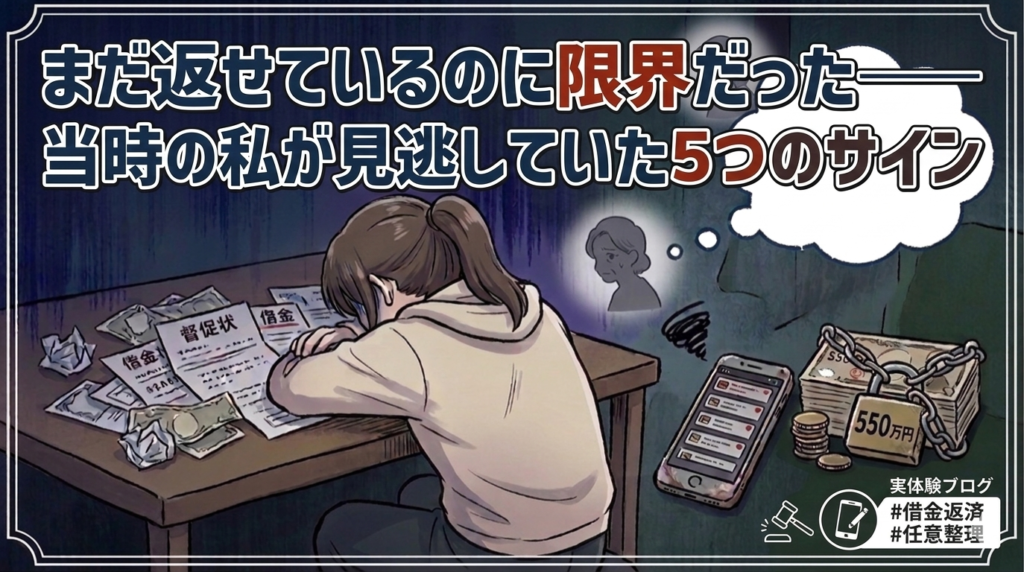 ※この記事は、借金550万円を経験した筆者が、債務整理を検討してから個人再生を選ぶまでの流れをまとめたものです。制度の専門解説ではなく、当時の体験をもとに書いています。 借金が増え続けていた頃 借金が増えていた頃、私はずっとこう思っていました... -