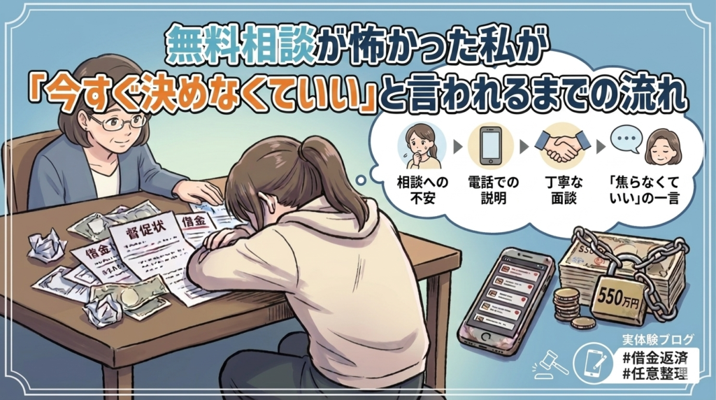 ※この記事は、借金550万円を経験した筆者が「相談するのが怖い」と感じながらも無料相談に踏み出した体験をもとに書いています。 債務整理の相談は怖いと感じる人が多い 借金の相談と聞くと、多くの人がこう思います。 怒られるのではないか 無理に契約さ... -