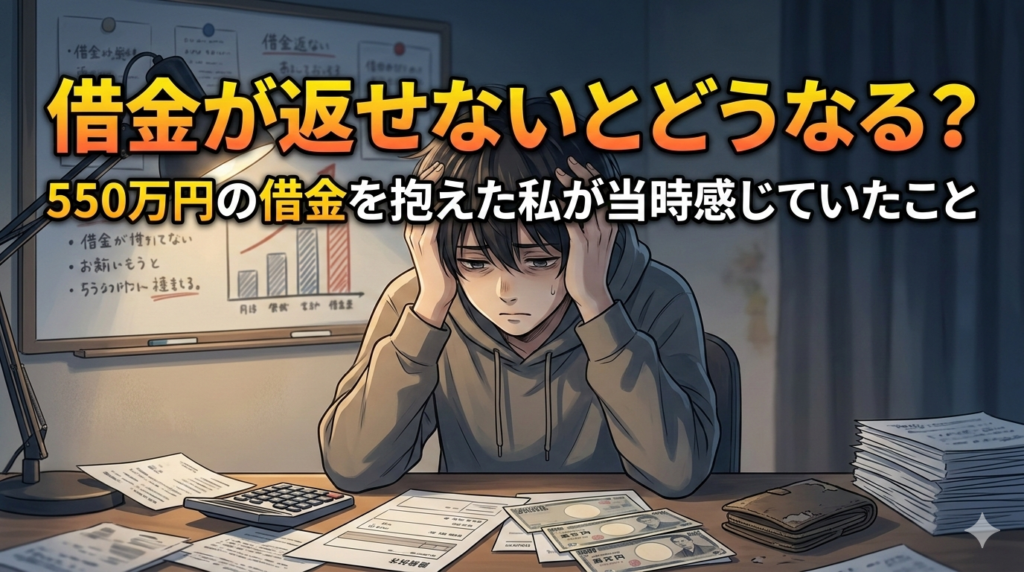 ※この記事は、借金550万円を経験した筆者が「借金が返せなくなるかもしれない」と感じていた頃の体験をもとに書いています。制度の専門解説ではなく、当時の不安や状況についてまとめています。 借金が返せないとどうなるのか 借金が増えていくと、誰もが...